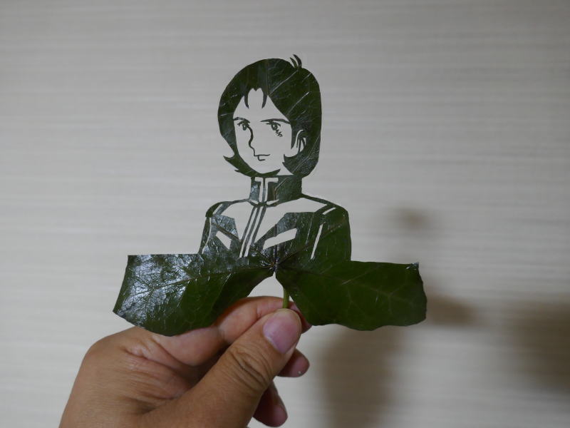 ●『機動戦士ガンダム』に登場するミライ・ヤシマの葉っぱアートです。 (UP-DATE:2025.08.16)