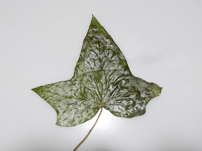 今回使用したのは、近所で採取した蔦の葉を、5日間グリセリン水溶液に浸け、5日間 押し葉にしたものです。