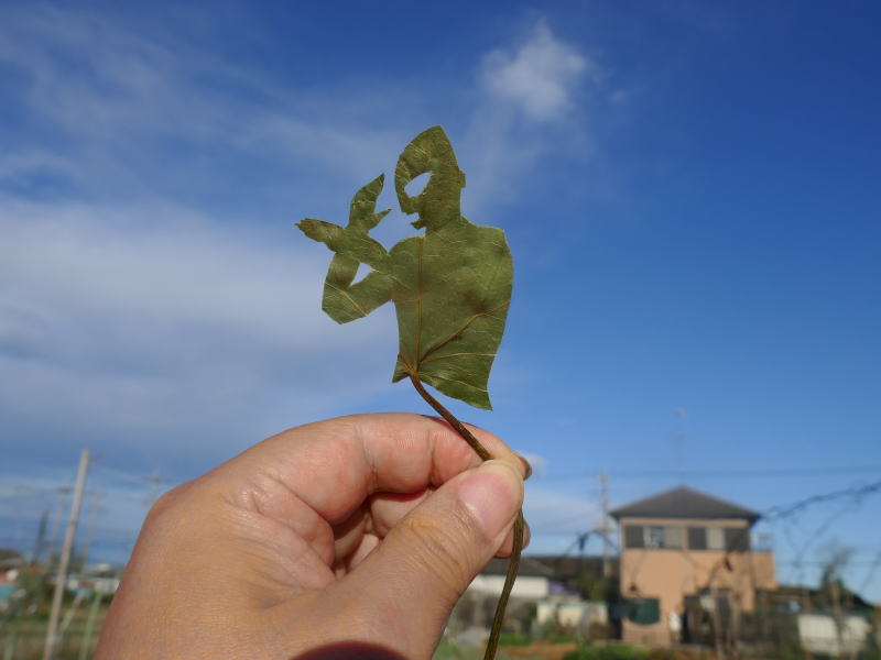 ●『ウルトラマン』の後期OP.に登場する切り絵のウルトラマンを切りました (UP-DATE:2025.11.22) あのオープニングの切り絵、決してリアルではありませんが、温かみのありましたね。 実際には影絵ではありますが、葉脈の感じが体表の模様っぽかったので、敢えて裏側を表としています。 今回使用したのは、実家の近所で採取した蔦の葉を、5日間グリセリン水溶液に浸け、 5日間 押し葉にしたものです。 このページの先頭へ