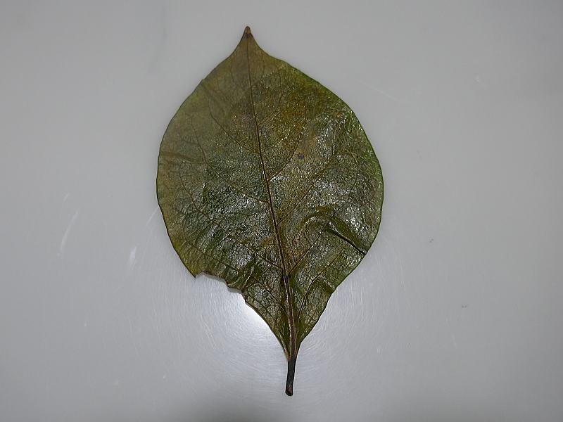 今回使用したのは、ウエルシア薬局・箱田二丁目店の近所で採取した柿の葉を、5日間グリセリン水溶液に浸け、