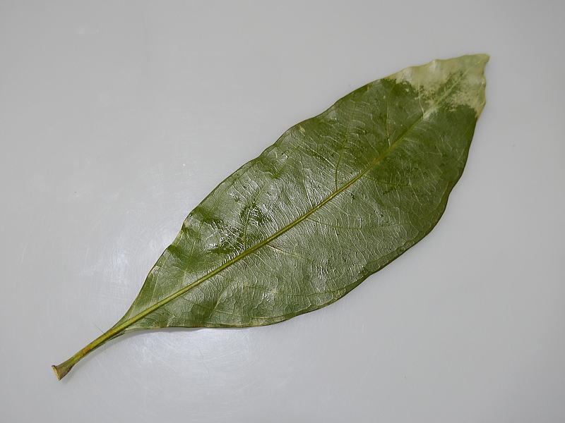 今回使用したのは、原口さんとこで採取した大型のユズリハの葉を、5日間グリセリン水溶液に浸け、