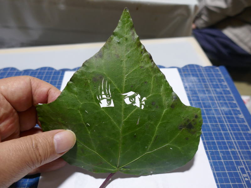 今回使用したのは、プリントライフの近所で採取した蔦の葉を、5日間グリセリン水溶液に浸け、