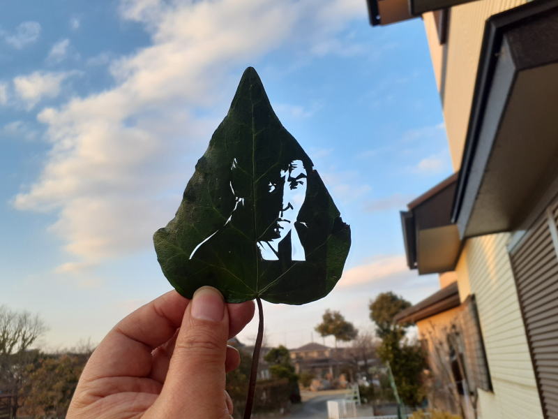 ●『必殺シリーズ』の顔とも言える藤田まことさん演じる中村主水を切りました。 (UP-DATE:2026.03.14) 似顔絵も切り絵も お齢を召した方の方が似せ易いので、必殺の中~後期の主水のイメージで原画を描きました。 今回使用したのは、プリントライフの近くで採取した蔦の葉を、5日間グリセリン水溶液に浸け、 5日間 押し葉にしたものです。 このページの先頭へ