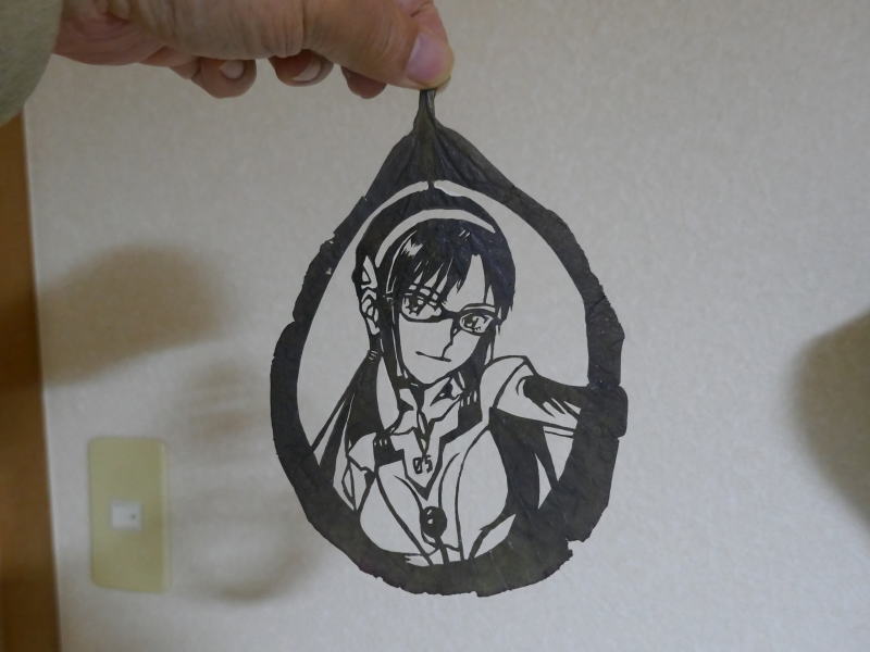 ●『ヱヴァンゲリヲン』シリーズに登場する謎多きパイロット、真希波・マリ・イラストリアスの葉っぱアートを切りました。