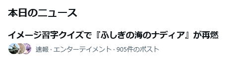 ●X (旧Twitter) の検索『おすすめ』の見出しです。(2026/01/19 18:45撮影) 『イメージ習字クイズ』にアップした『ふしぎの海のナディア』がX (旧Twitter) でトレンド入りをしました。